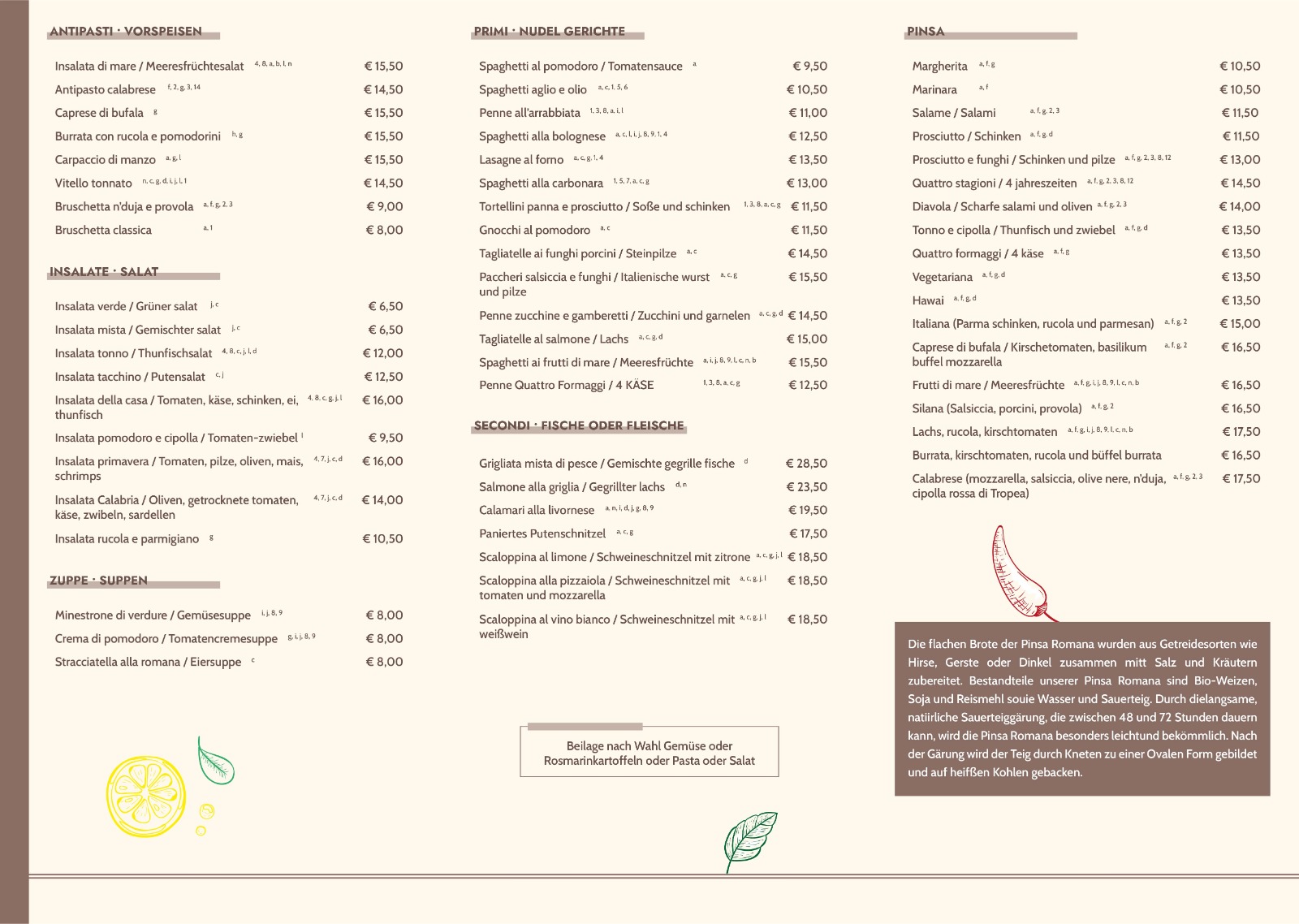 Sie können sich unsere Speisekarte und Weinkarte als PDF herunterladen.